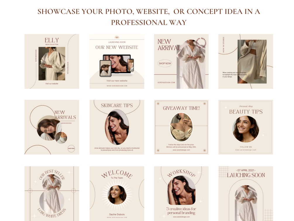 ALL IN ONE: 55 Instagram post and story templates with beige tone (Photo are not included). All features are perfect for your need.